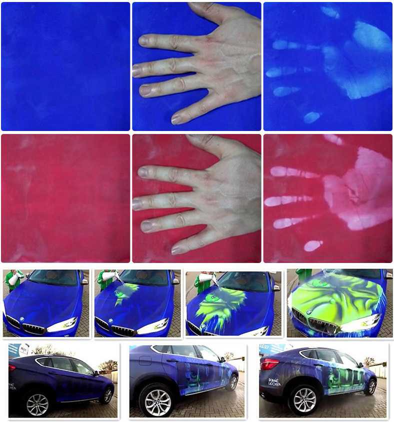想制作不同溫度變不同顏色的溫變材料非常簡單,我們根據自己想要的溫度和顏色選擇溫變粉,最底層的是溫度最高的,等第一層溫變粉干后我們再涂上第二層,這樣一層一層地涂完后就可以得到你想要的效果了。