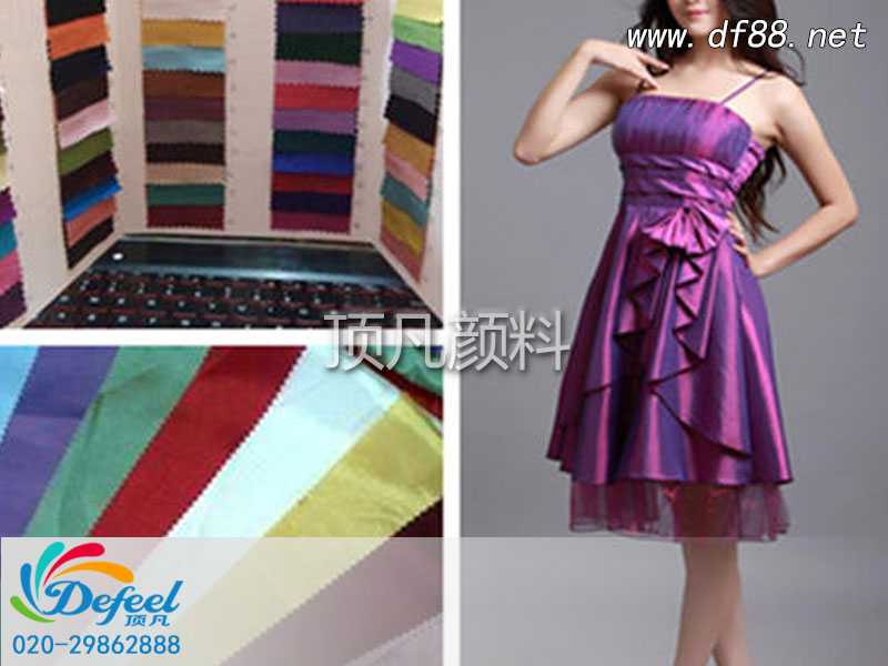 頂凡變色龍顏料含有多種變色顏料,就拿頂凡的8500紅變金黃綠變色龍來說,它可以變出4種不同顏色,藉由該光源之能量而產生顏色變化(變為紫色、紅色、黃色、天空蘭色)。變色龍服裝印花采用是變色龍顏料,它是天然云母薄皮外覆蓋金屬氧化物人工合成新型顏料,經過多層包覆精確控制多種無機氧化物的包覆厚度而成的無機顏料。